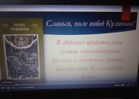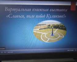 08.09 Сычевская библиотека к 645 летию Куликовской битвы для обучающих Протасовской школы провела виртуальную книжную выставку "Славься. поле побед Куликово!". Книжные издания «От Руси к России» Л. Гумилева, «Куликовская битва» В.И. Буганова, «История России в рассказах для детей» А. Ишимова, «Дмитрий Донской», «Родина» С. Романовского и другие поведают читателям о крупном сражении того времени между объединённым русским войском во главе с Великим князем Владимирским и князем Московским Дмитрием Донским и войском правителя западной части Золотой Орды Мамая.