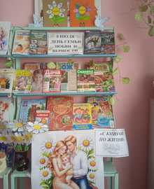 К 15 мая была оформлена выставка ко Дню семьи. Библиотекарь познакомила читателей с книгами и журналами, которые могут быть полезными и интерсными для чтения всей семьи